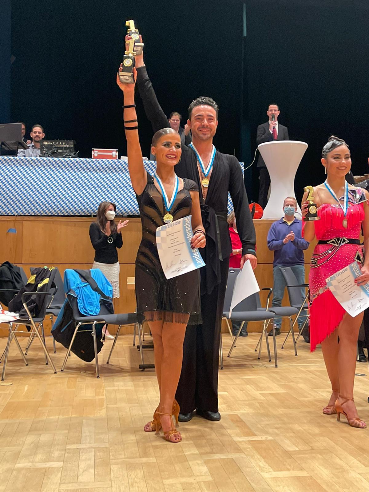 Am 09.10.2021 fand nach einem Jahr Pause wieder die bayerische Landesmeisterschaft für die Hauptgruppe Latein in den Klassen D-A statt. Austragungsort war das Kurhaus in Bad Aibling, welches eine besonders schöne und stillvolle Kulisse darstellte. Die TSG Bavaria war in allen vier Klassen mit insgesamt sieben Paaren vertreten. In der D-Klasse haben sich Andreas Berger und Hanna Scheibenbogen von 24 Paaren den dritten Platz ertanzt und sind somit in die C-Klasse aufgestiegen. Hier haben es Christian Bonawitz und Laura Tollmann bis ins Semifinale geschafft. Auch in der B-Klasse, welche mit 27 Paaren zahlenmäßig am stärksten vertreten war, konnten Bernhard Ging und Julia Wendling 16 Paare schlagen und somit ins Semifinale einziehen. Die Stimmung, die durch die zahlreichen Zuschauer zu Beginn des Tages schon gut war, steigerte sich kontinuierlich und erreichte bei der A-Klasse ihren Höhepunkt. Diese euphorische Unterstützung für die 17 A-Klassen-Paare war so stark, dass auf der Fläche teilweise die Musik nicht mehr richtig zu hören war.