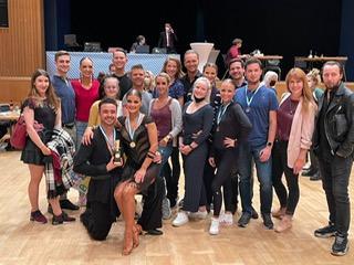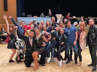 Markus Vlcek und Valerie Hense spornte vermutlich diese Stimmung so sehr an, dass sie in allen fünf Tänzen Erster wurden und als bayerische Meister in die S-Klasse aufstiegen. Das gerührte Gewinnerpaar beendete den erfolgreichen Turniertag mit einer emotionalen Rumba.